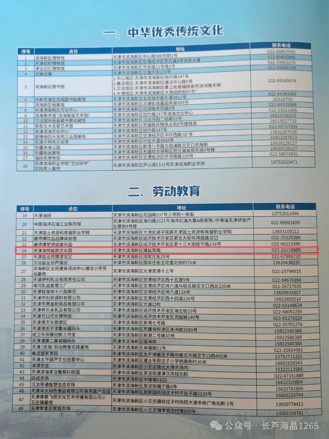 1月15日,天津市濱海新區教體局發布第一批濱海新區中小學實踐資源名錄,在6條特色路線90個點位資源中,海悅鹽韻文化園憑借其獨特的海鹽生産史和深厚的工業文化内涵成功入選勞動教育類優質實踐資源。